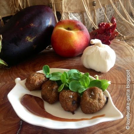 Bignè di melanzane ed Altenburg con salsa piccante di pesche