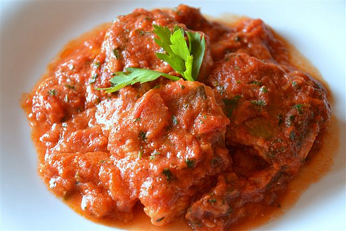 Aggiungere i pomodori maturi (o pelati) e cuocere a fuoco lento.