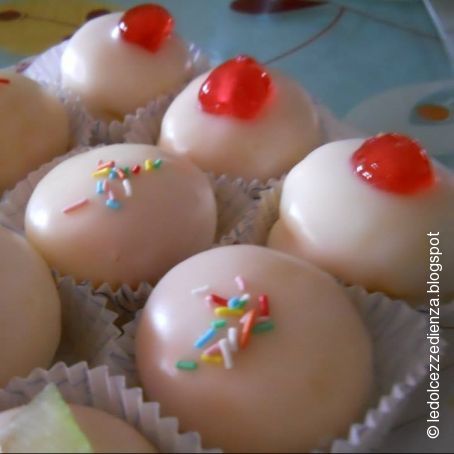 Preparate la glassa, mescolando lo zucchero a velo con qualche goccdia di limone e un pò d'acqua, fino ad ottenre un composto denso. Ricoprite i dolcetti con la glassa.
