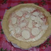 Posiziona la pasta sfoglia con la sua carta da forno in una teglia tonda.