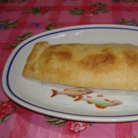 Aiutandoti con la carta forno arrotola la sfoglia su stessa e chiudi i lati con una forchetta.
