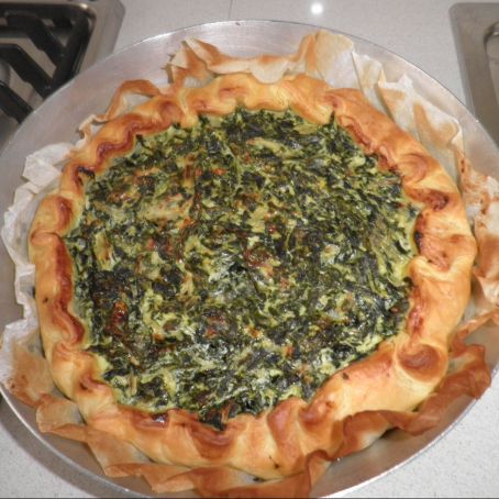 - 1 rotolo di pasta sfoglia rotonda, 600 g di bietole surgelate (1 kg se fresche), 100 g parmigiano reggiano grattuggiato, 2 uova, una ricotta, maggiorana.