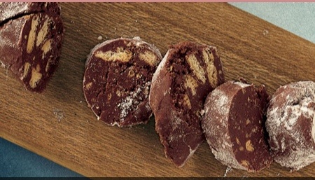 Versa il composto su di un foglio di carta d’alluminio e arrotolalo fino a dargli la tipica forma “a salame”. Lascialo in frigo a rassodare per alcune ore avendo cura di toglierlo mezz’ora prima di servirlo.