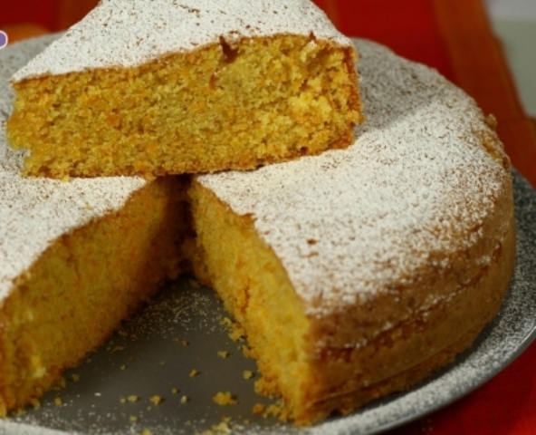 Nel robot mettere lo zucchero con i 6 tuorli e aggiungere mentre va il succo e la buccia di un limone, il sale, le mandorle, le carote (macinate molto bene), la farina e il lievito.