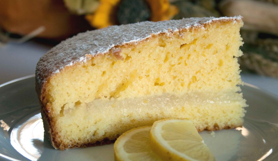 Preparare la crema. Tagliare la torta orizzontalmente e farcire con la crema.