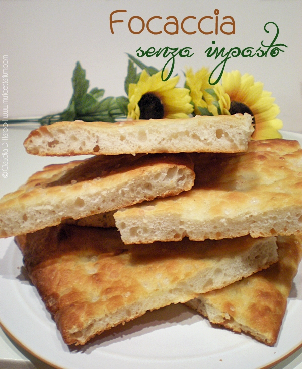 Trascorso il tempo rovesciate l'impasto sulla lastra forno precedentemente foderata di carta forno che ungerete con olio, l'impasto è morbidissimo, semi fluido, allargatelo con le mani unte e non troverete difficoltà. Preparate un'emulsione di olio ed acqua e versatela poco a poco sull'impasto praticando dei buchi con i polpastrelli. Cospargete di sale ed infornate in forno già caldo a 200° per circa 25 minuti o finchè la superficie non si sarà dorata. Fate intiepidire, tagliate e servite.