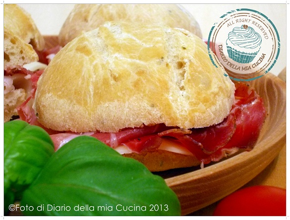 Mescolare la farina con il sale e le erbe tritate finemente, versate tutto in una spianatoia e fate una fontana. Al centro versate il lievito sciolto in 100 ml di acqua tiepida, iniziate a impastare e aggiungete poco per volta altra acqua fino a quando tutta la farina sarà amalgamata. Impastate energicamente fino a quando non sarà liscio ed elastico. Fate una palla e lasciate lievitare fino a quando raddoppia di volume coperta da un canovaccio. Fate riscaldare il forno a 200° . Formate delle palline della stessa misura e sistematele in una placca da forno distanziandole tra di loro e lasciate riposare per un’oretta. Fate una croce o due incisioni parallele nella superficie, spennellate con l’olio e infornate per 30/40 minuti. Quando saranno dorate in superficie, toglietele dal forno e lasciatele raffreddare. Farciteli con lo speck e la provola e servite!