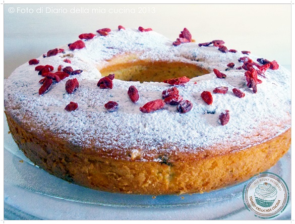 In una ciotola sbattete rapidamente le uova con lo zucchero, aggiungete lo yogurt, il burro fuso a bagnomaria, il latte e le bacche, mescolate e unite la farina e il lievito setacciati. Date una mescolata veloce versate nello stampo per ciambellani e infornate a 190° per 35/40 minuti. La superficie deve essere dorata. Lasciate raffreddare e servite.