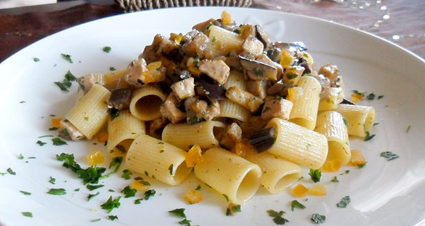 L’ingresso dell’autunno sancisce la fine della stagione delle melanzane ed io prima di virare verso nuove pietanze più attuali, ho voluto salutarle realizzando delle mezze maniche rigate ai sapori di Sicilia, un primo piatto tutto dedicato a questa mia amata isola ed ancora particolarmente adatto al periodo, visto che il clima mite sta ancora accompagnando le nostre giornate. In questa ricetta ho voluto accostare alle melanzane, dell’ottimo pesce spada e, sempre per rimanere in ambito siciliano, ho cercato di creare un contrasto di sapori, opponendo all’amarognolo delle melanzane, due cucchiai di dolcissima arancia candita che hanno conferito al piatto un bel tocco di raffinatezza.