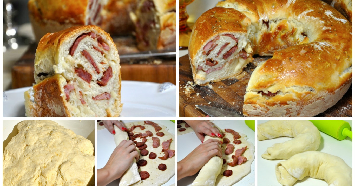 Stendete l’impasto, farcitelo con i salumi e i formaggi tagliati a pezzetti, arrotolatelo e sistematelo in una teglia a ciambella, coprite e lasciar lievitare, 40-60 minuti fino al raddoppio.