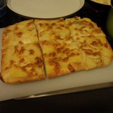 Disporre la farina in una capiente terrina. In un bicchiere d'acqua sciogliere il lievito e lo zucchero e aggiungere alla farina. Mescolare. In un altro bicchiere sciogliere il sale e aggiungere l'olio. Inserirli nella farina. Impastare. Porre l'impasto in una ciotola coperta da un panno pulito e porre la ciotola in forno spento. Lasciar lievitare per almeno 2 ore. Stendere metà dell'impasto ricavato su di una teglia leggermente cosparsa d'olio. Fare lo stesso con l'altra metà di impasto. Coprire le due teglie di un sottile strato di polpa di pomodoro, abbondare invece con la mozzarella che dev'essere stata tagliata precedentemente in piccoli dadini. Cospargere di origano.