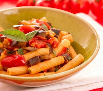 La pasta con le melanzane è un primo piatto molto semplice, da preparare con ingredienti freschi e genuini: melanzane, pomodori e basilico.