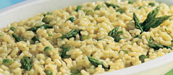 continuare la cottura aggiungendo gradualmente l'acqua di cottura degli asparagi ben calda.