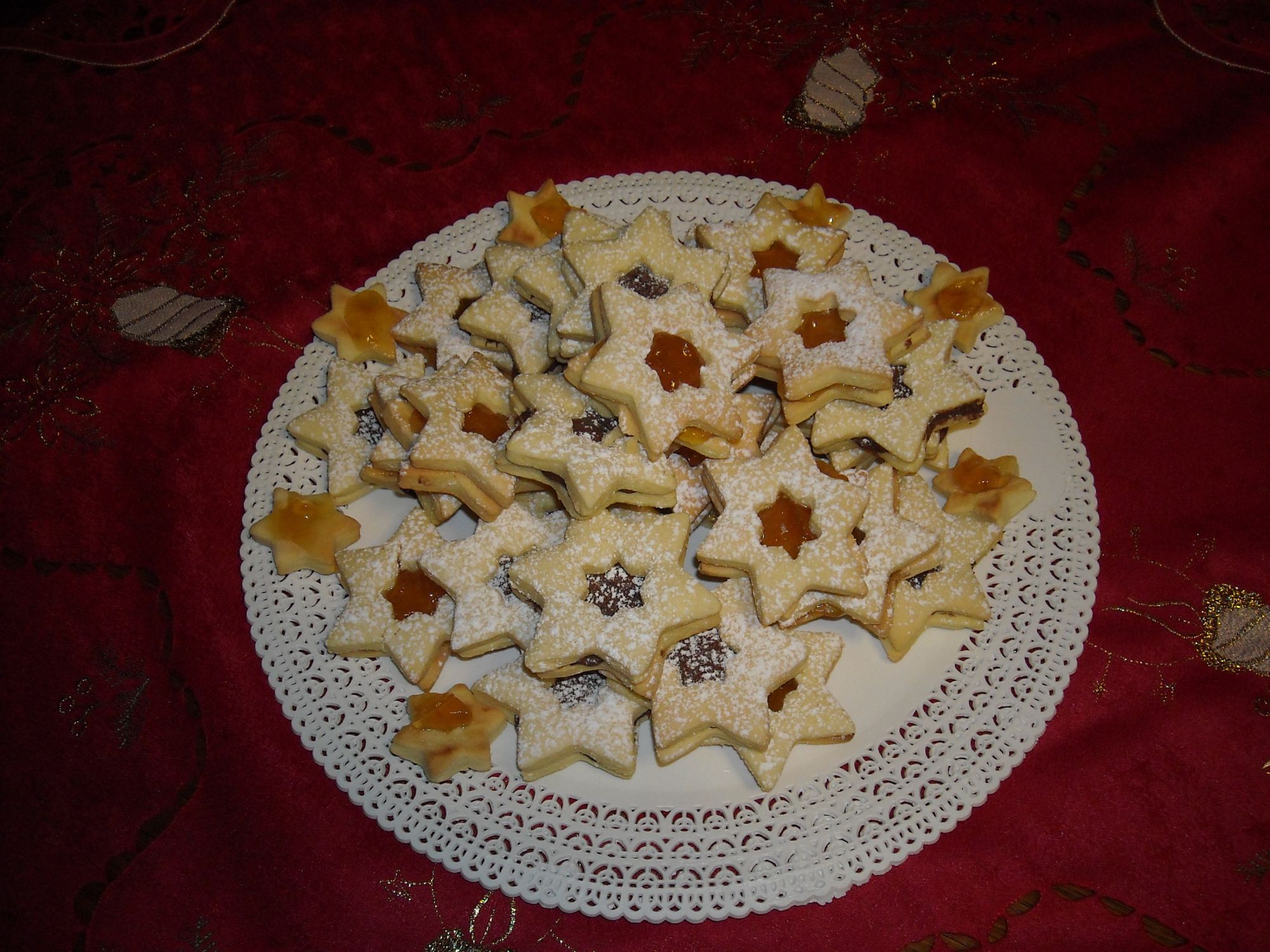 Far raffreddare le stelle, spalmare quelle intere con la marmellata o nutella e sovrapporle a quelle forate.