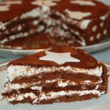 Una torta a strati con crema al cioccolato fondente ed al cioccolato bianco: ottima, conquista i bambini grazie alla sua crema golosissima. Gli strati composti da biscotti secchi bagnati nel latte la rendono morbida e delicata.
