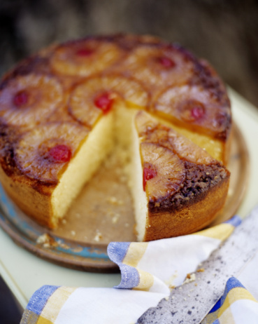 Sbatti in una terrina i tuorli con lo zucchero e 100 g di burro, fino ad ottenere una crema. Aggiungi 350 g di farina, mescola un pò di latte e lo sciroppo di ananas. Incorpora il lievito, qualche gheriglio di noce (a piacere) la vanillina e l'ananas tagliato a pezzetti. Aggiungi un pizzico di sale e gli albumi montati a neve. Mescola a lungo fino ad ottenere un composto compatto e cremoso. Trasferisci il composto ottenuto in una tortiera imburrata e infarinata precedentemente. Poni la tortiera in forno già caldo a 180°C e fai cuocere la torta per 50 minuti circa. Togli dal forno, adagia la torta su un piatto da portata e lasciala raffreddare. Porta in tavola.