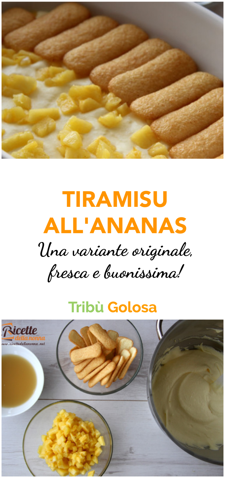 Formate un primo strato in una pirofila dai bordi alti. Versateci sopra la crema di mascarpone, quindi uno strato con i pezzetti di ananas.