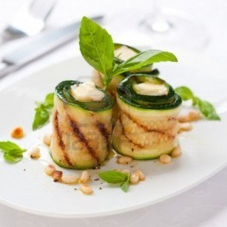 Procedete in questo modo per tutte le fette di zucchine,poi disponetele in piedi uno a fianco dell’altro e servite