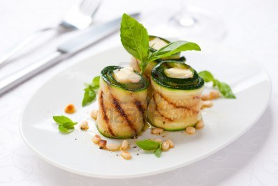 Grigliate le zucchine su una piastra rovente, poi mettetele in un piatto a raffreddare.