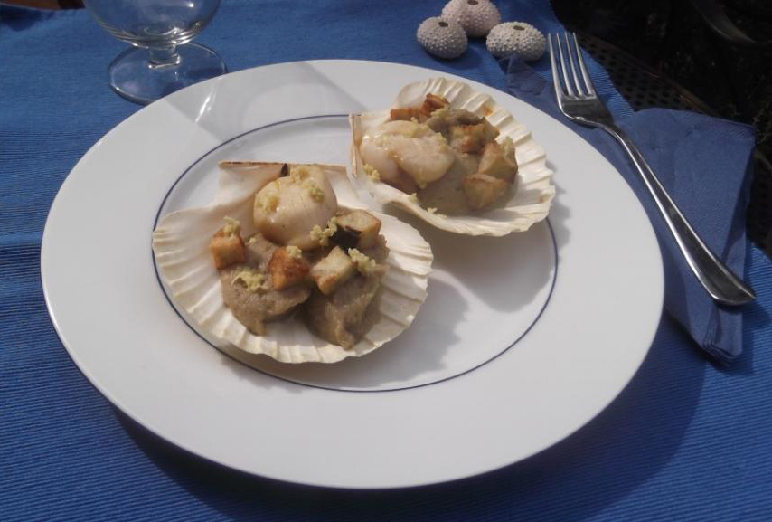 Mousse di melanzana con capesante e zenzero