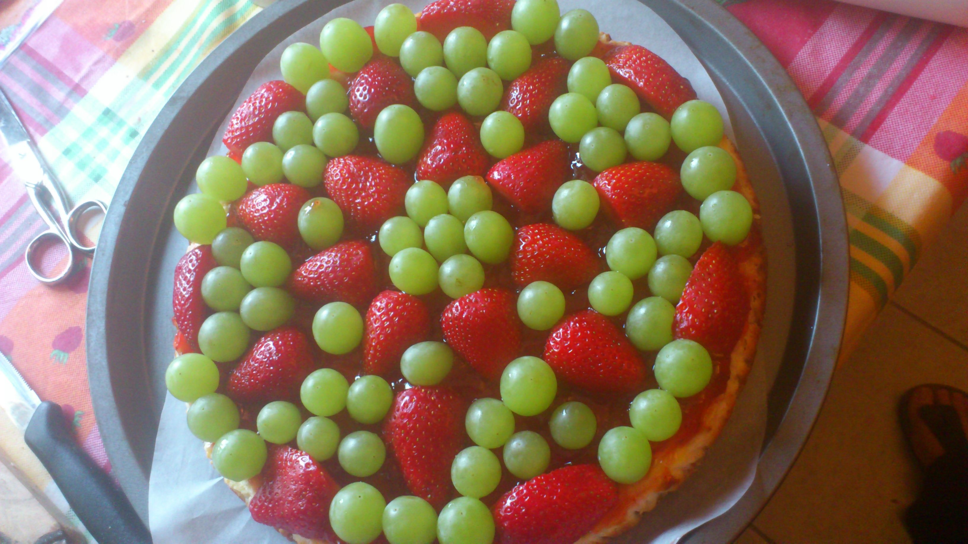 Tagliare la frutta e decorare a piacere la torta.