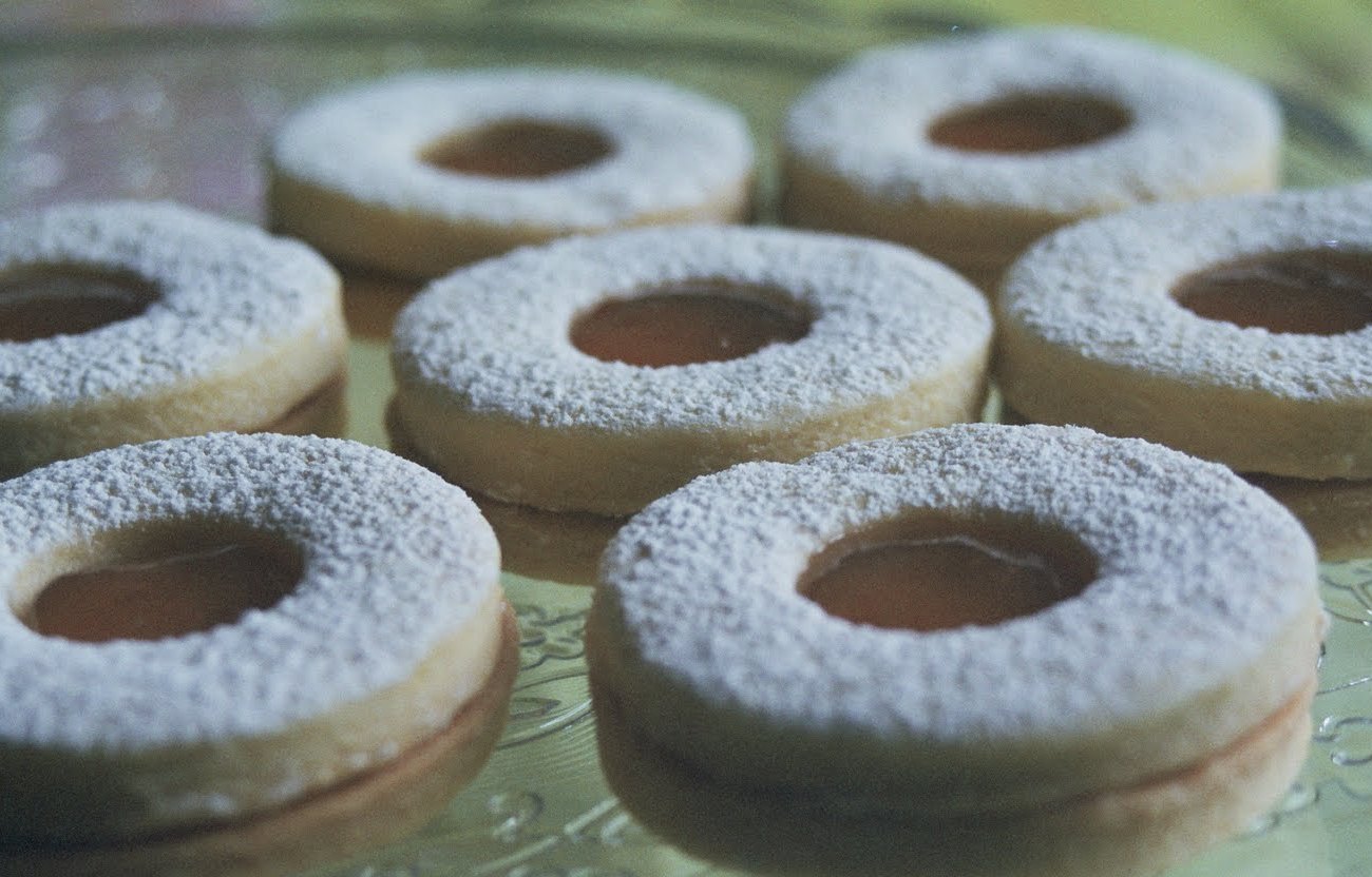 Una volta raffreddati, unire ogni coppia di frollini con una punta di cucchiaino di marmellata e spolverizzate gli occhi di bue di zucchero a velo.