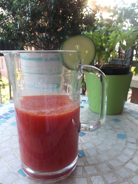 Il gazpacho va servito ben freddo, una volta fuori dal frigo agitatelo perchè tende a separarsi durante il "riposo".