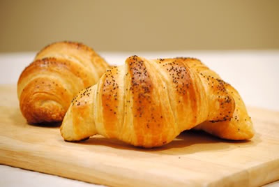 Posizionare i cornetti sulla tegia coperta con carta forno, spennellarli con l'albume e coprire con i semi di sesamo, girasole o papavero.
