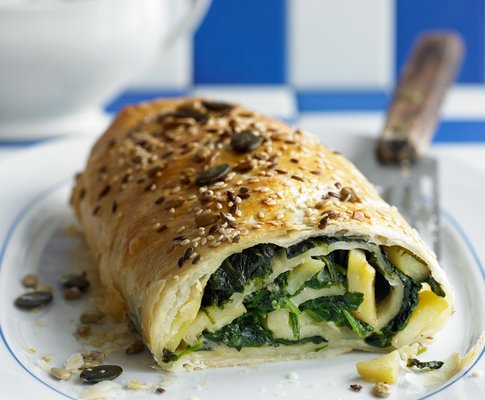 Lasciar raffreddare, poi versare il preparato sulla pasta sfoglia (se lo mettete quando è ancora caldo, la sfoglia si scioglie e lo strudel non si chiude bene) e arrotolare chiudendo ai lati.