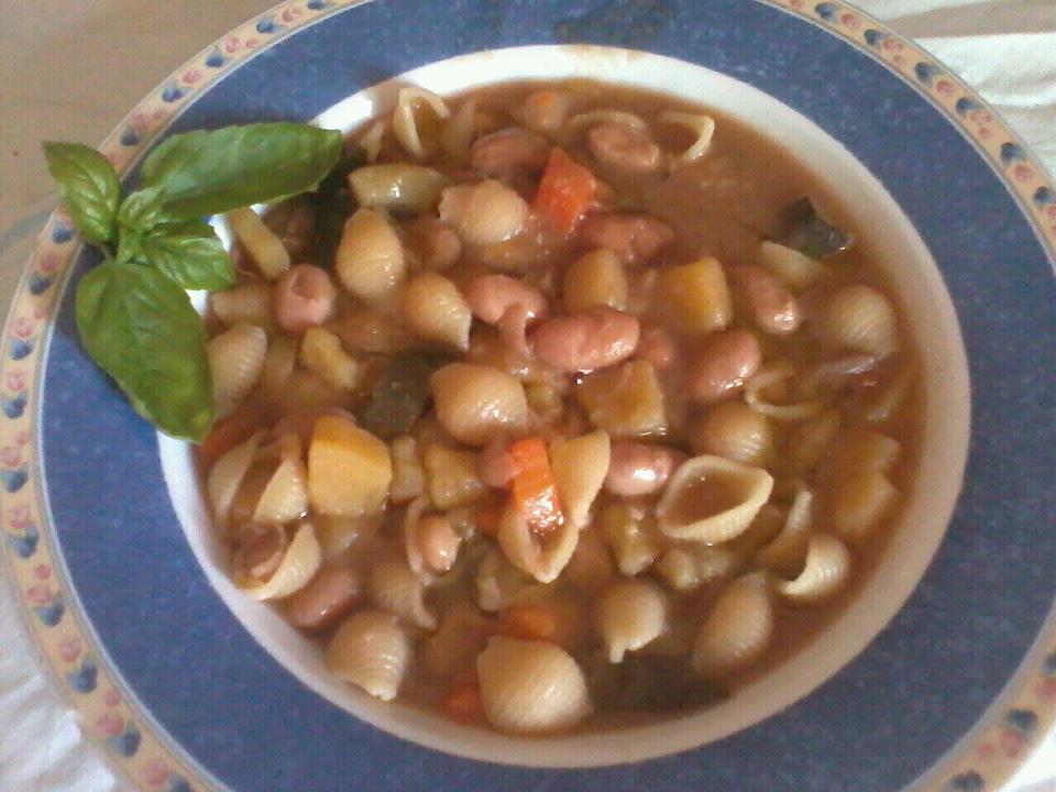una zuppa" paradisiaca"...delicata e profumata ;ottenuta con 5 semplici ingredienti :fagioli borlotti freschi,carote,zucchine,patate,pasta tipo conchigliette(e poi naturalmente:sale,olio e PREZZEMOLO a piacere) .
