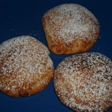 Spennellate con un tuorlo d'uovo. Infornate per 35 minuti a 180°. Spolverare con zucchero a velo e versate un po' di caramello liquido per decorare.