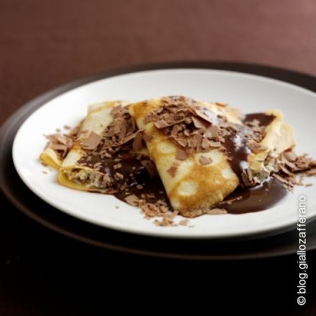 Per preparare le crèpe: Prendi una terrina lavora l'uovo e il tuorlo con l'aiuto della frusta, aggiungi un pò alla volta la farina e il latte, mescola il composto fino a che sarà omogeneo e cremoso. Lascia riposare per circa 1 ora. Prepara una padella antiaderente, spennellala con un pò di burro fuso, trasferisci la pastella e porta sul fuoco. Cucina per bene la pastella su entrambi i lati. Adagiala su un piatto, ripeti lo stesso procedimento fino a consumare tutta la pastella. Per la crema al cioccolato: mescola i tuorli con lo zucchero, fino ad ottenere un composto spumoso. Taglia a pezzetti il cioccolato e fallo fondere in un pentolino assieme alla panna, mantieni il fuoco lento e mescola bene il tutto. Incorpora al composto di tuorli e zucchero, quindi metti sul fuoco e fai cuocere lentamente, non fare bollire, otterrai una crema densa. Togli dal fuoco, raffredda.