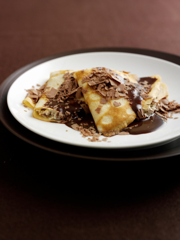 Intanto montate a neve gli albumi e uniscili al composto. Prendi le crèpe e distribuisci un pò di crema al cioccolato in ognuna di esse. Ripiegale su se stesse e a piacere e guarniscile con qualche cucchiaio di cioccolato fondente.