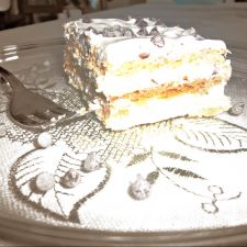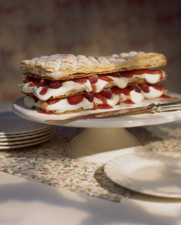 Stendi la pasta sfoglia, tagliando 3 strati di 2 mm di spessore. Cuoci in forno su carta pergamentata a 180°C per 35 minuti. Quando è ora di sfornare, posa un reticolo sulla pasta per evitare che si gonfi.