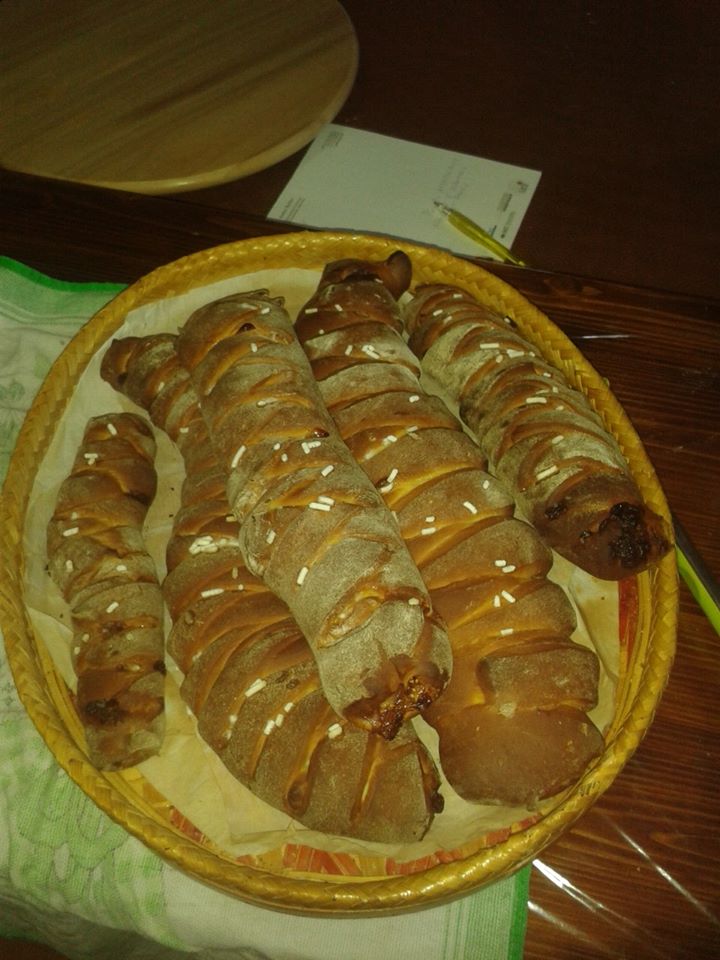 Riprendere L’impasto lievitato e stenderlo per bene, con un mattarello in un rettangolo sottile, al centro e per lungo farcirlo per bene con uno strato di marmellata. Praticare lungo ambedue i bordi verticali del rettangolo dei tagli, lunghi quasi fino alla farcitura al centro, con un altezza di circa 1 cm 1/2 e sistemarli verso il centro prima da un lato e poi dall’altro, formando così la treccia ! riporre le treccie. su placca forno foderata di carta forno e facciamola lievitare ancora 1 oretta. (Deve raddoppiare il volume!) Spennelliamo la treccia con un goccio di latte e cospargiamo in maniera uniforme la superficie con dello zucchero semolato. Inforniamo in forno preriscaldato a 180° per circa 30 minuti.