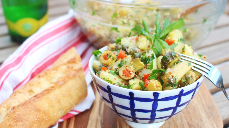 Infine aggiungere alle patate le olive, i capperi, i cetriolini e il prezzemolo assieme alla salsa di senape preparata a parte e servire fredda.
