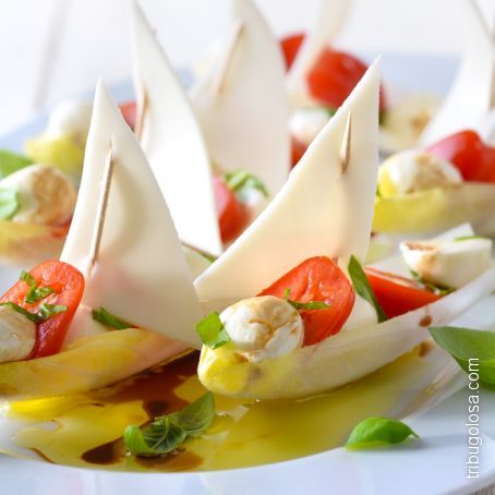 Disporre le foglie su un piatto da portata e nell'incavo di ogni foglia mettere prima mezzo cucchiaio di maionese, poi qualche scaglietta di Grana o Parmiggiano poi la glassa di aceto balsamico.