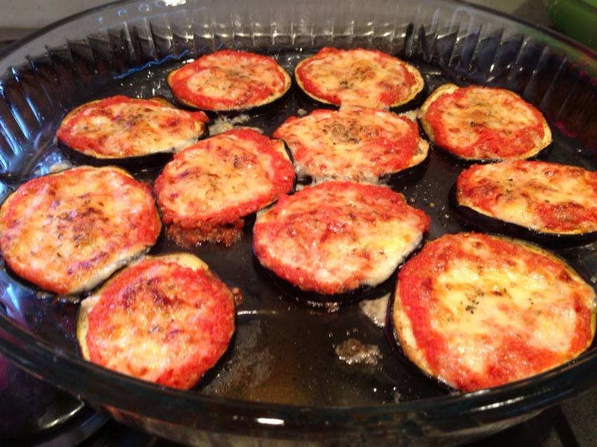 Metterle in una teglia, aggiungere la salsa di pomodoro precedentemente salata e zuccherata, ed infine aggiungere il formaggio che preferite, che può essere grattuggiato, a cubetti, a fette....