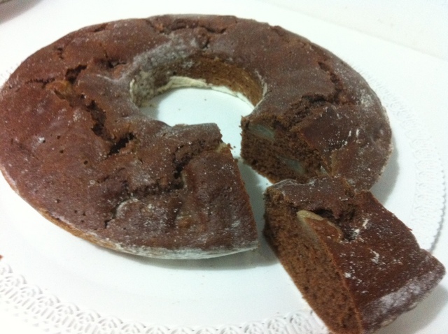 In una terrina monta bene le uova con lo zucchero, fino ad ottenere un composto gonfio e spumoso; unisci il burro ammorbidito a temperatura ambiente, la farina setacciata con il lievito e la vanillina. Mescola e fai amalgamare il tutto aggiungendo infine le gocce di cioccolato e le pere tagliate a tocchetti.