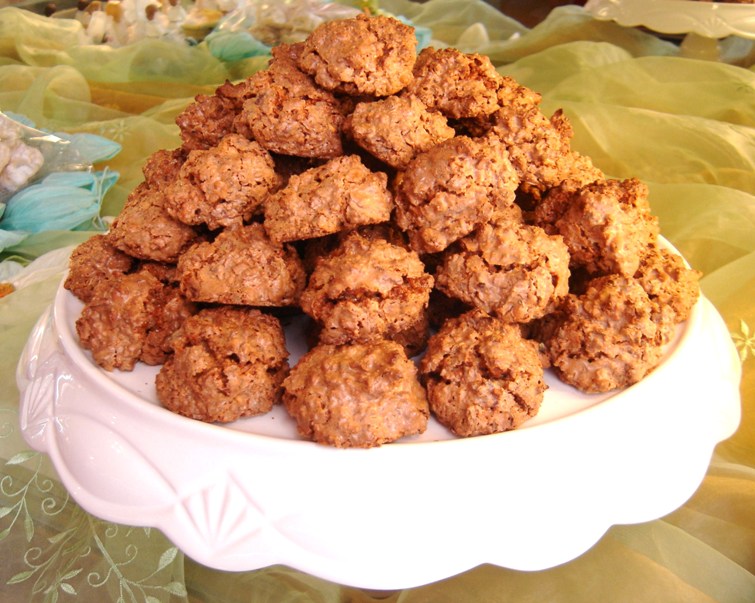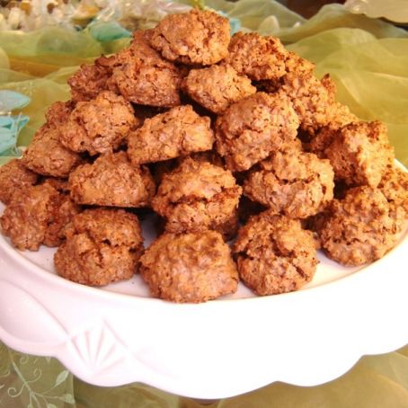 Sopra la placca foderata di carta forno, disponi mucchiettini dell'impasto, distanziati tra loro. Cuoci nel forno preriscaldato a 180°C per 20 minuti circa.