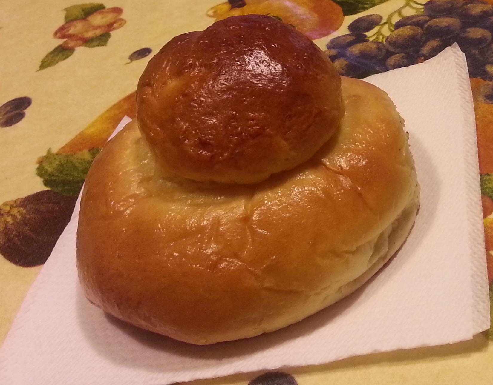 Trascorse le due ore le brioches saranno lievitate ancora. A questo punto spennellare le brioches con un composto di tuorlo e latte e mettere in forno preriscaldato a 200°C per circa 30 minuti.