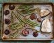 Tagliate i pomodorini a metà, affettate la cipolla di Tropea molto sottile. Tagliate i peperoni a filetti.