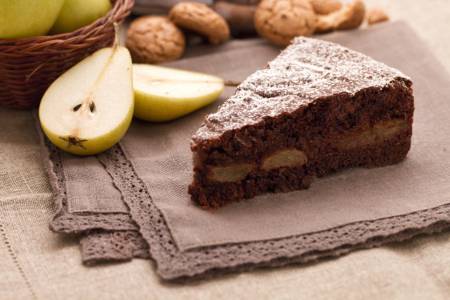 Versare lo zucchero in una ciotola, unire il burro morbido, le uova, il lievito, la farina ed il cioccolato fuso. Versare l'impasto in uno stampo da plumcake imburrato ed infarinato. Sbucciare le pere lasciandole intere, quindi appoggiarle lungo tutto lo stampo da plumcake. Far cuocere per circa 40 minuti a 180°.