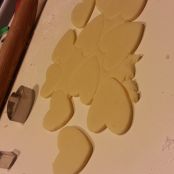 Stendere la pasta e ricavare dallo strato di pasta le forme (stella/cuore/altro) dei biscotti.