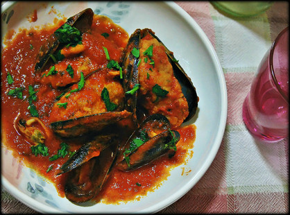 Aggiungere il pomodoro al soffritto, ed aggiungerci un pò dell'acqua delle cozze per insaporire. Salare leggermente e lasciar ritirare.