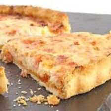 Far rosolare i dadini di pancetta e stenderli sul fondo della sfoglia.Quindi cospargere il tutto con la gruviera grattugiata.