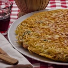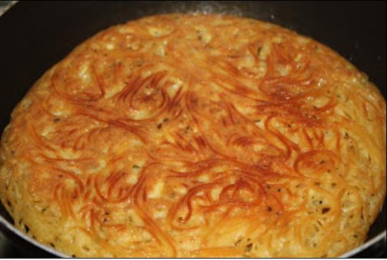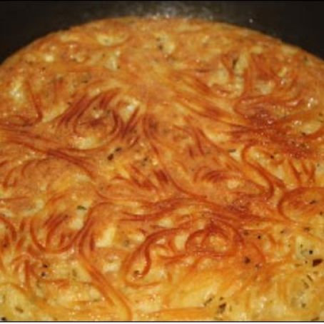 Mettere in una ciotola la pasta , le uova precedentemente sbattute con abbondante parmiggiano. Riscaldare la l'olio rimasto nella padella, depositare uno strato di pasta (metà circa) ricoprire con salsiccia e formaggio a volontà.