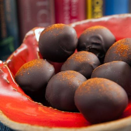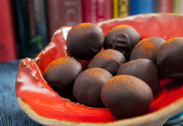 Nel frattempo, sciogliete il resto del cioccolato fondente (100 g) a bagnomaria; non appena il cioccolato si sarà fuso toglietelo dal fuoco. Infilzate con uno stuzzicadenti le palline appena tolte dal freezer ed immergetele una ad una nel cioccolato fuso rivestendole completamente. Nel frattempo spolverizzate i bon bon con il peperoncino o paprika. Se mantenete le palline fredde basterà un solo minuto perché il cioccolato fuso si solidifichi. Lasciate i bon bon a temperatura ambiente per 15 minuti, poi metteteli in frigo sino a quando non sarà ora di servirli.