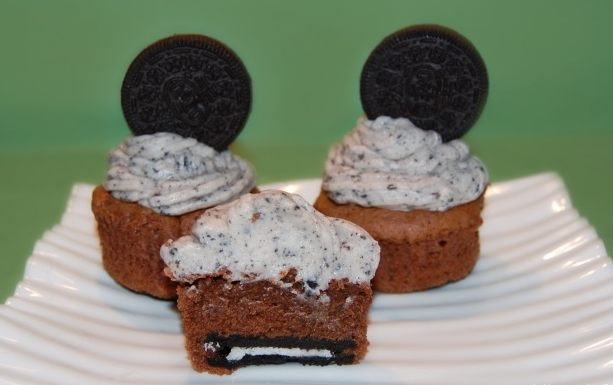 Posizionate un biscotto oreo sulla superficie dei dolcetti e servire