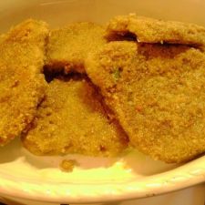 Far consumare a fiamma alta, quindi far intiepidire la carne e passarla prima nell'albume e poi nell'impanatura, facendola ben aderire.